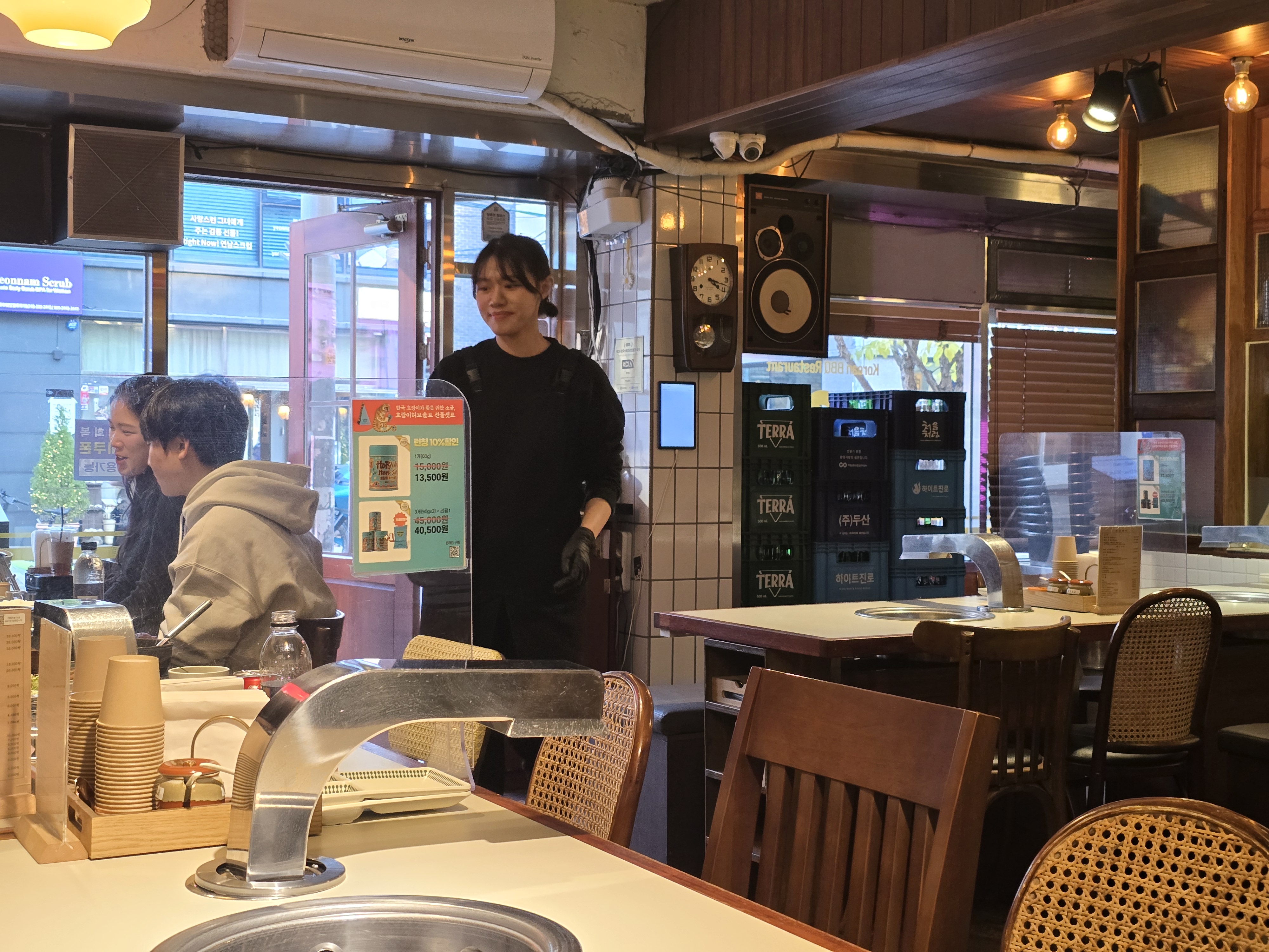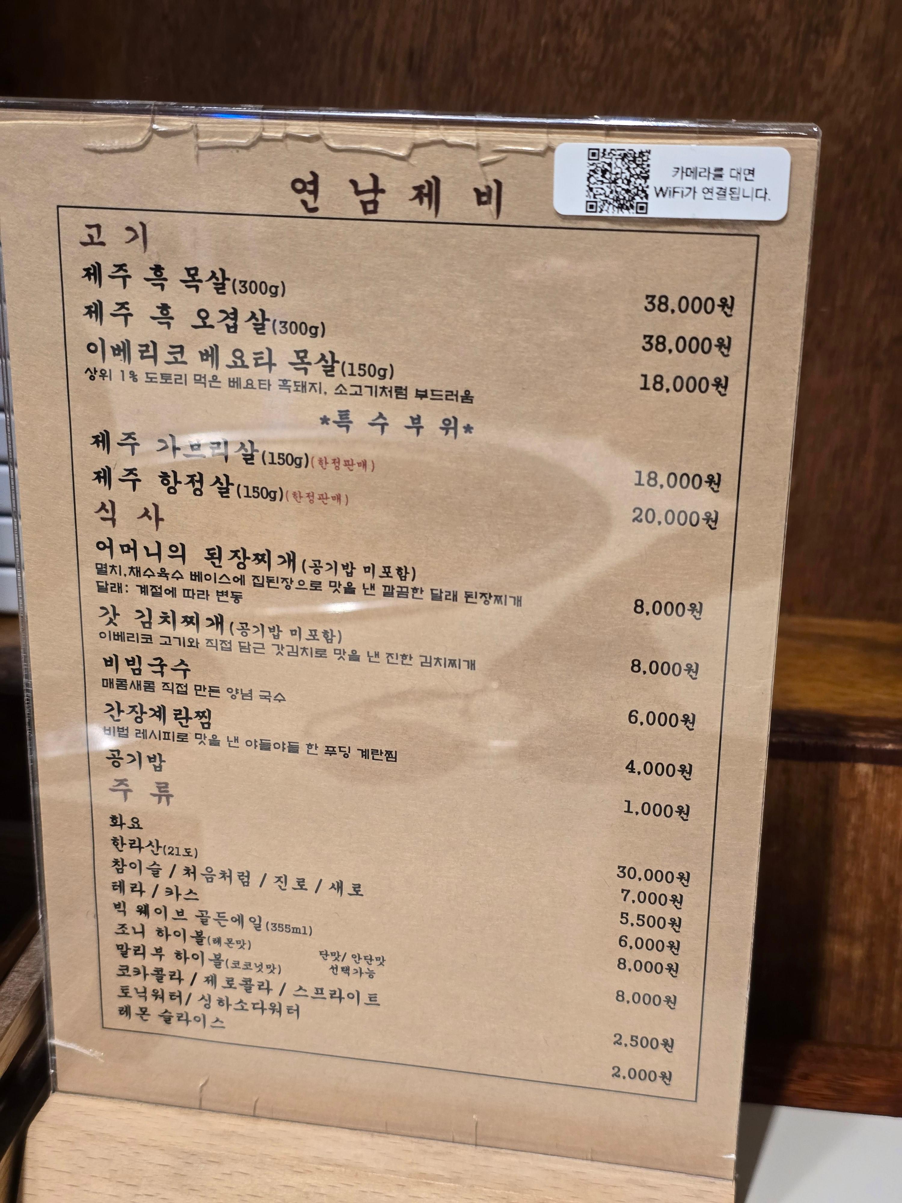 4시에 들어오니 우리 포함 두 테이블에 손님이 있네요 연남제비는 돼지고기 집인데 실내도 무슨 카페처럼 깨끗하고 환풍이 엄청 잘 되어 고기 냄새도 별로 없더라구요