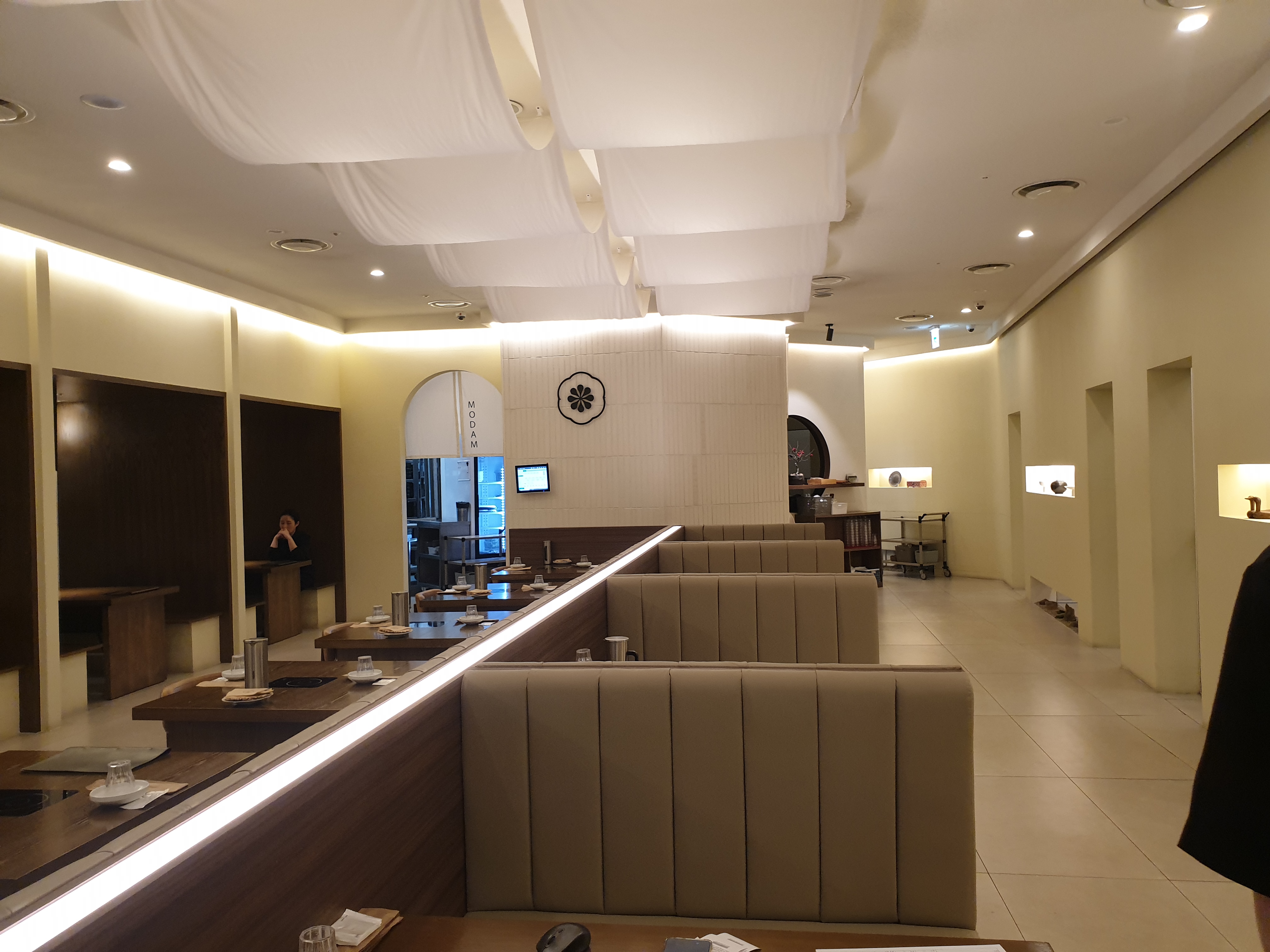 오늘은 여의도 IFC몰에 있는 한정식 '모담 다이닝'에 대한 후기를 소개합니다. 이곳은 점심 예약이 되지 않아 30분 이상 기다렸다가 들어갔어요. 홀에 테이블도 넓고 오픈되었지만 룸도 있어 프라이빗하게 약속 잡을때 이용하면 좋겠더라고요.