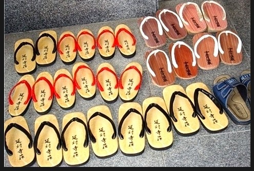 료깐 로비를 들어서자 실내화 용으로 준비된 일본의 전통신발 '게다'