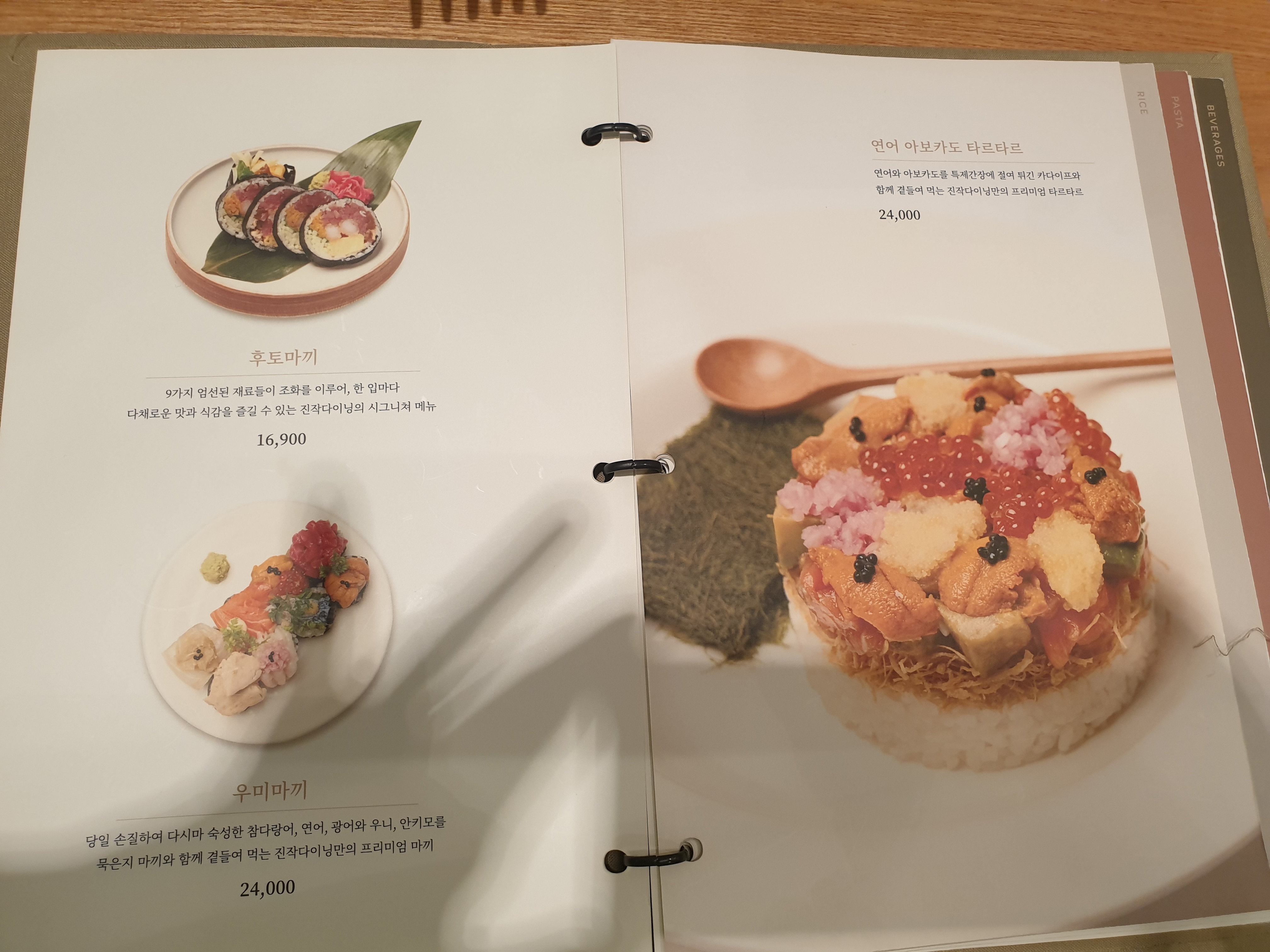'진작 다이닝'은 용산 아모레퍼시픽 본사 건물 지하 1층에 위치한 레스토랑인데, 깨끗한 식재료에 트렌디한 퓨전 요리를 2만원 안팎에서 가성비있게 즐길 수 있어요.