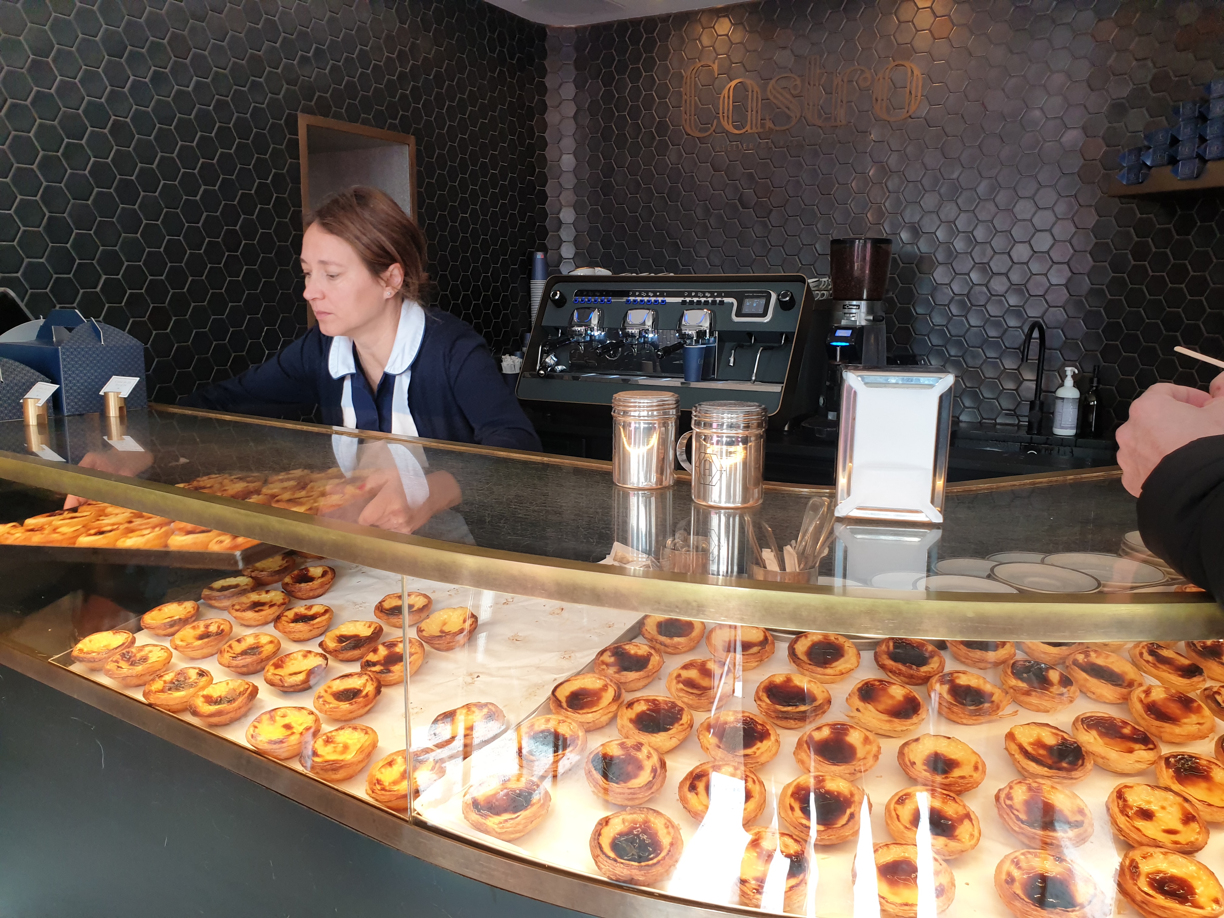 유리창 너머로 보이는 빵 굽는 장면과 퍼지는 버터 향이 인상 깊었어요. 갓 구운 나타들을 바로바로 이렇게 진열을 하기 때문에 따끈따끈하고 정말 맛있어요.