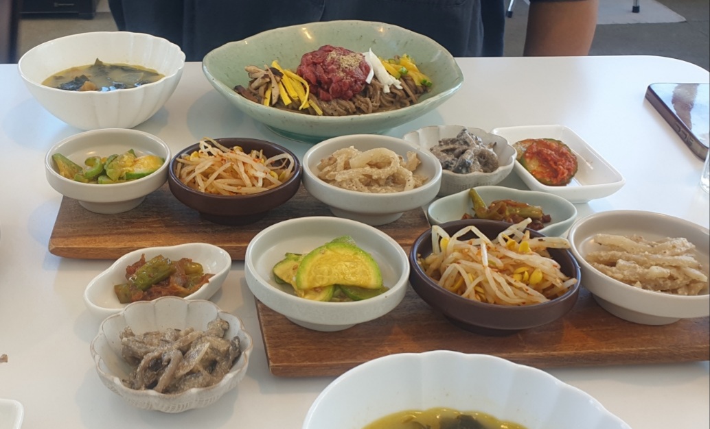- 한우 육회·메밀면 반상차림 – 한우 육회와 차가운 메밀국수가 세트
